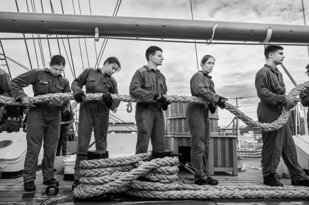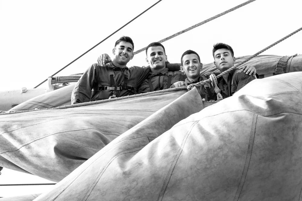 Within these pages, carefully selected and rendered in black and white—a stylistic choice that harmonizes with the bulkheads of the sailing ship—the crew and students of the first class of the Naval Academy reveal their technical prowess, daily routines, and the passion and dedication that imbue every moment of individual and professional growth.