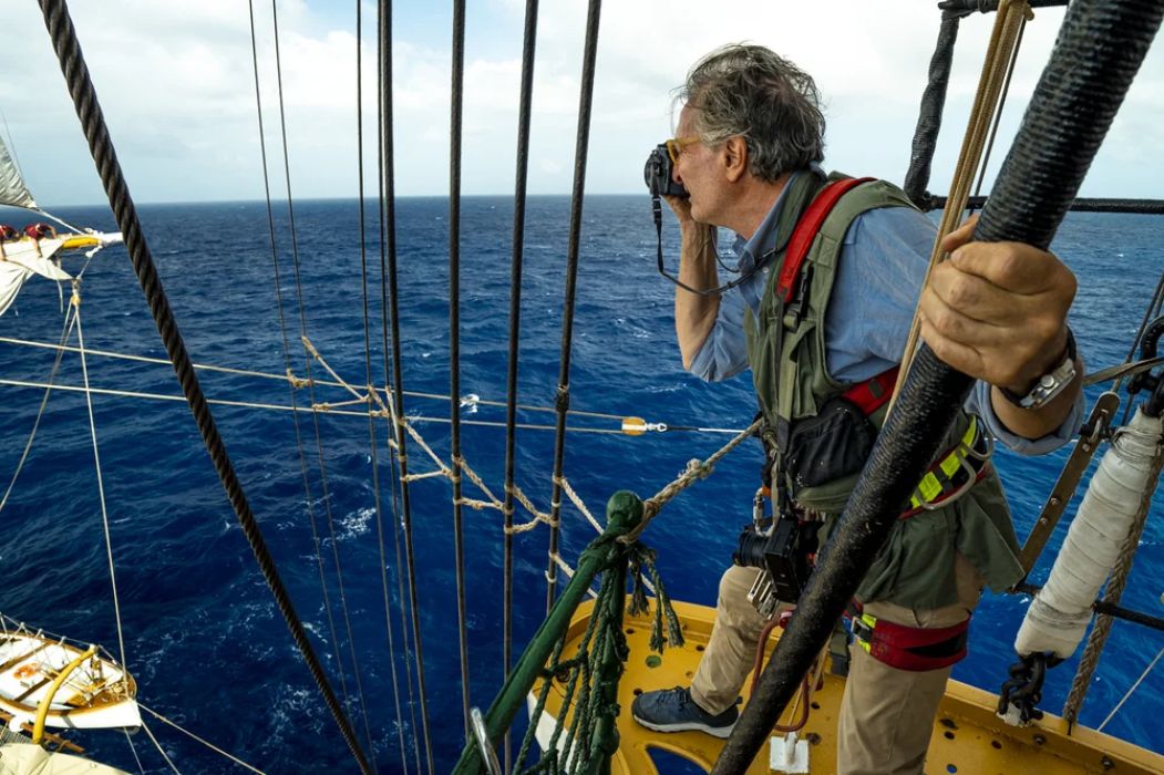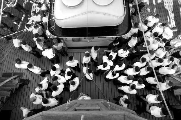 Carlo Mari, always in love with the marine world, inspired by photographers who traveled on commercial sailing ships of the early 1900s, embarked last summer for 45 long days – 23 of which were spent crossing the Atlantic – on the Vespucci ship to emotionally and spectacularly portray the life on board of the crew and cadets, the soul of the most beautiful ship in the world, creators and guardians of its magnificence.